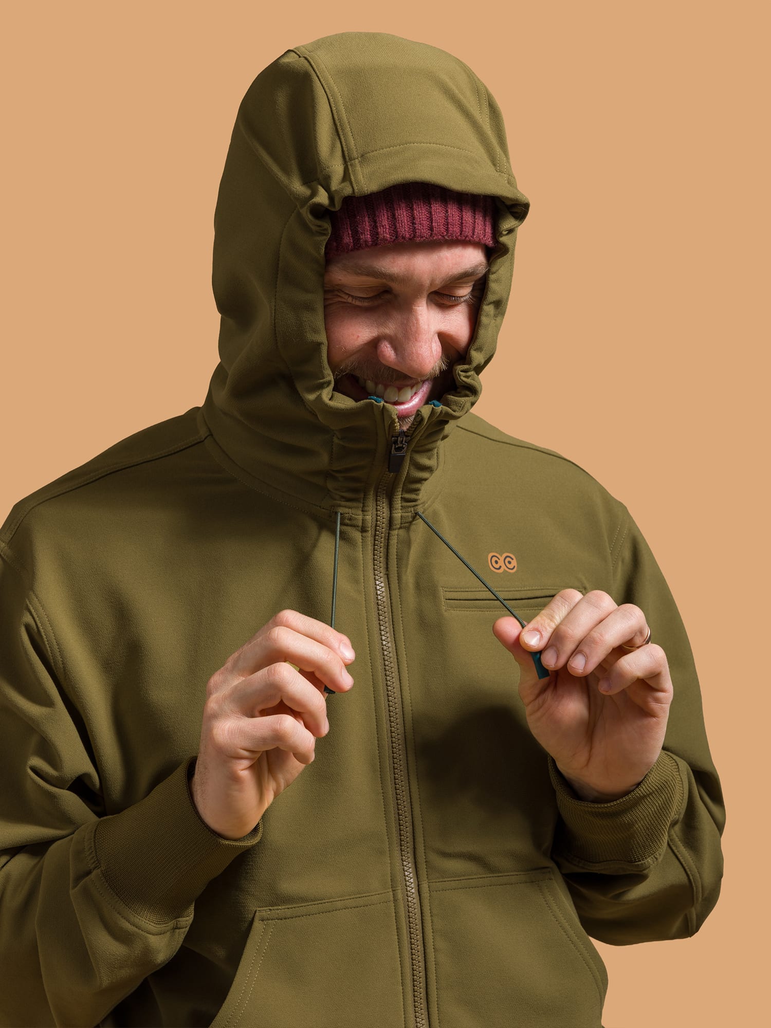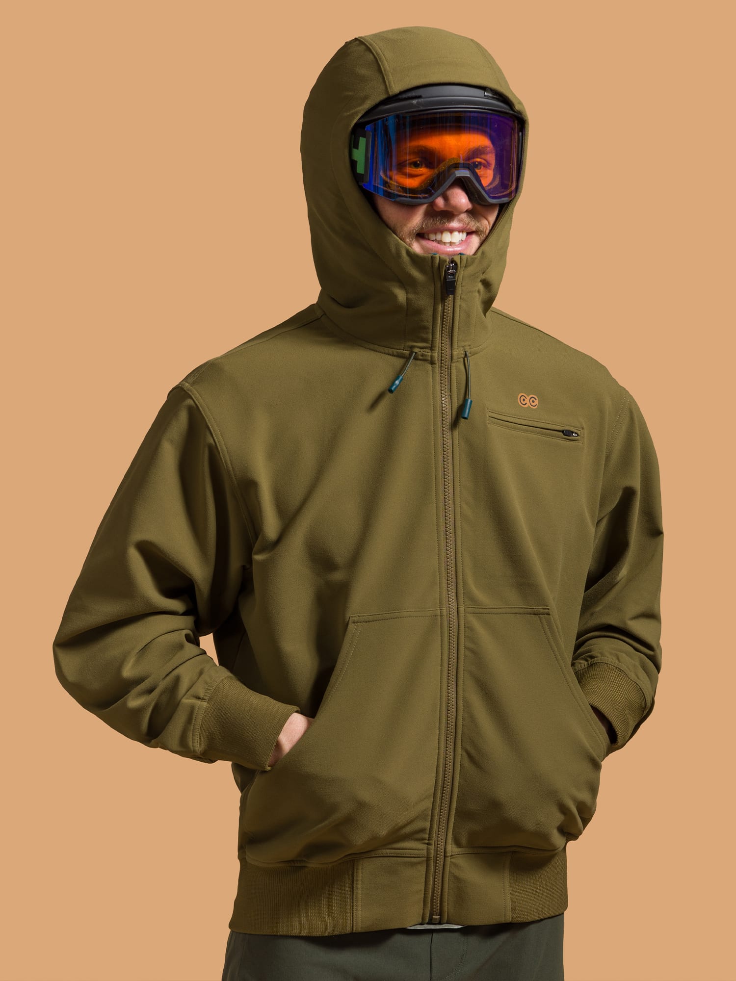 A smooth, durable outer face blocks wind and stands up to variable weather, while the soft brushed interior keeps things comfortable no matter how the day unfolds. Built-in stretch moves with you through long travel days, wet trailheads, and everything in between. The hood is engineered to fit cleanly with both a bike helmet, snow helmet, and a climbing helmet. Hidden cord locks keep the silhouette streamlined and versatile.