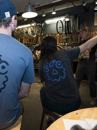 We worked with a local bad a$$ printhouse Front Line Design in Bozeman, MT to make this small run of premium printed shirts. So cool to just head down the street and see them being printed!